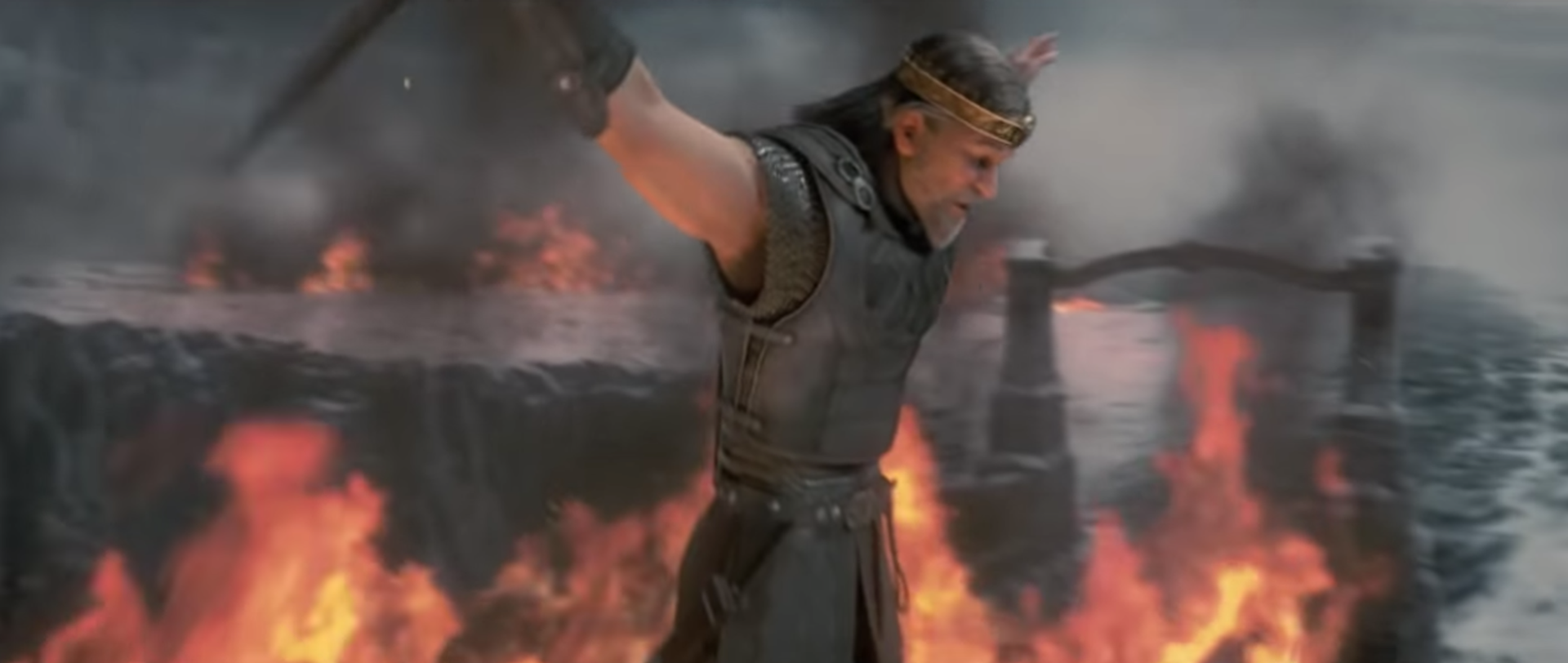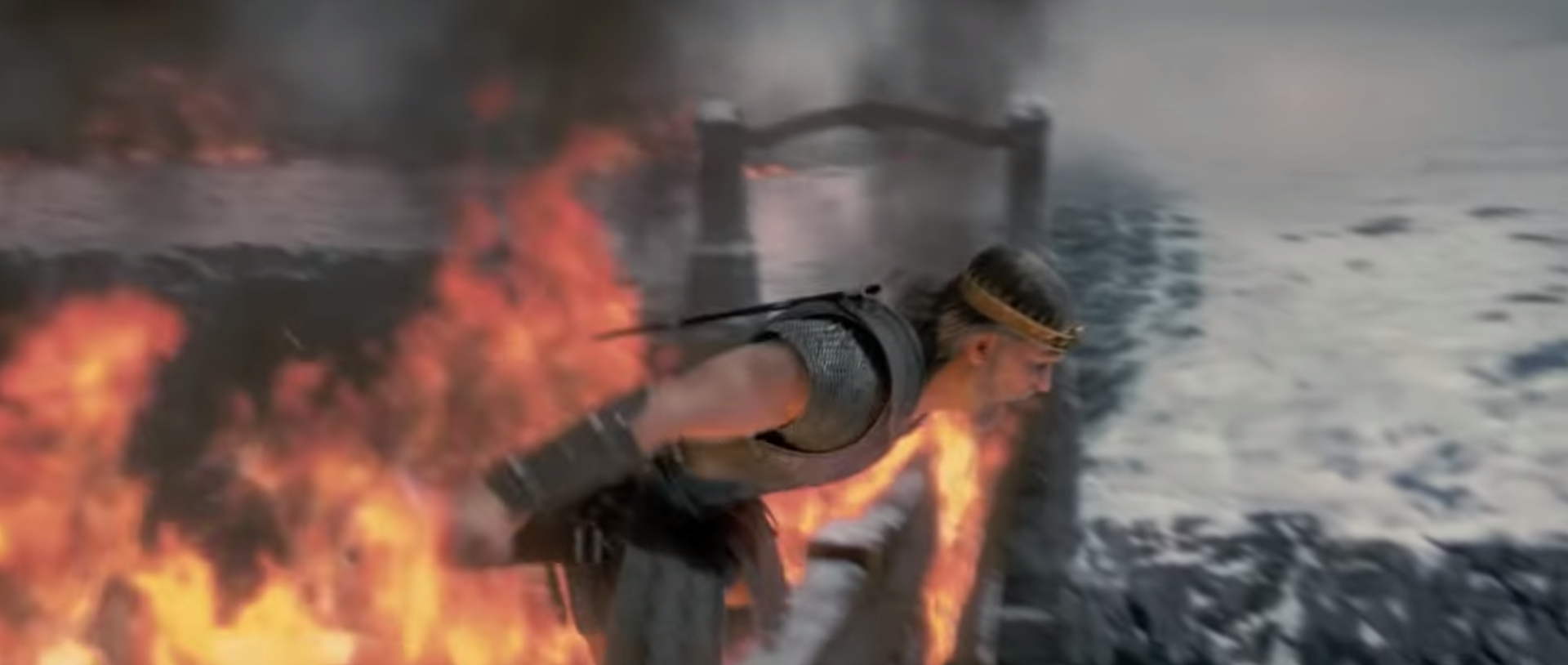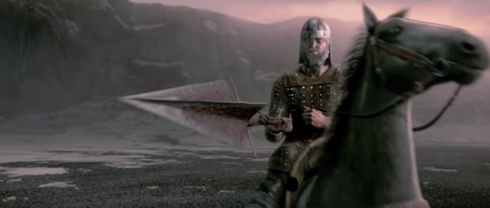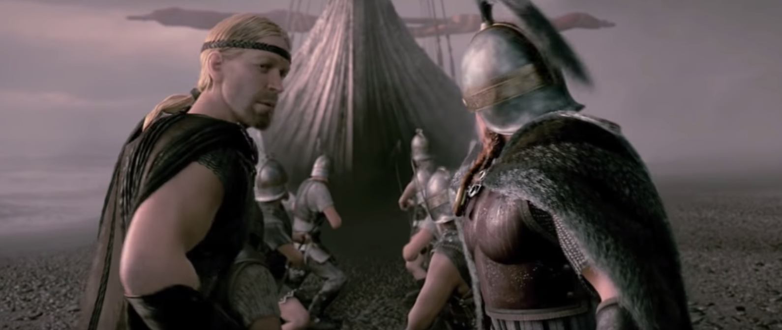 Secondary actions support or emphasize the main actions in a scene, adding depth to characters and objects. In the following scene, a character confronts Beowulf, pointing his spear at him while still holding the reins with his other hand. The subtle movement of the reins shows that the character remains vigilant and prepared for action, ready for any threat from Beowulf. This secondary action adds dimension to the character, conveying his alertness. Additionally, the horse's subtle movements further enhance the realism, suggesting the character's limited control.