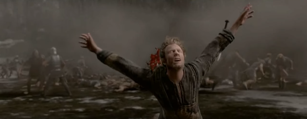 In this scene of the Beowulf movie that released in 2007, the follow through technique is used make the animation of his hair convincingly real. As the character (on the right) turns his head, his ponytail (appendage) experiences a bit of drag and is hence slightly delayed. Even after the character’s head comes to a stop, we can see the ponytail follow through as it continues to move slightly past the stopped head after which it comes back to a stop. In contrast, Beowulf’s hair employs a lower degree of follow through and overlapping action, suggesting that his hair is more stiff than his friend’s.