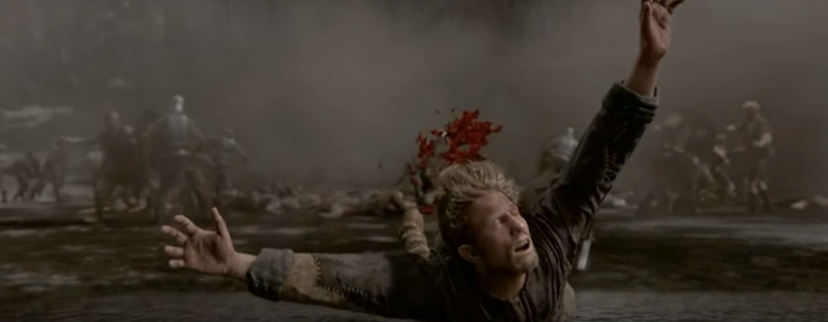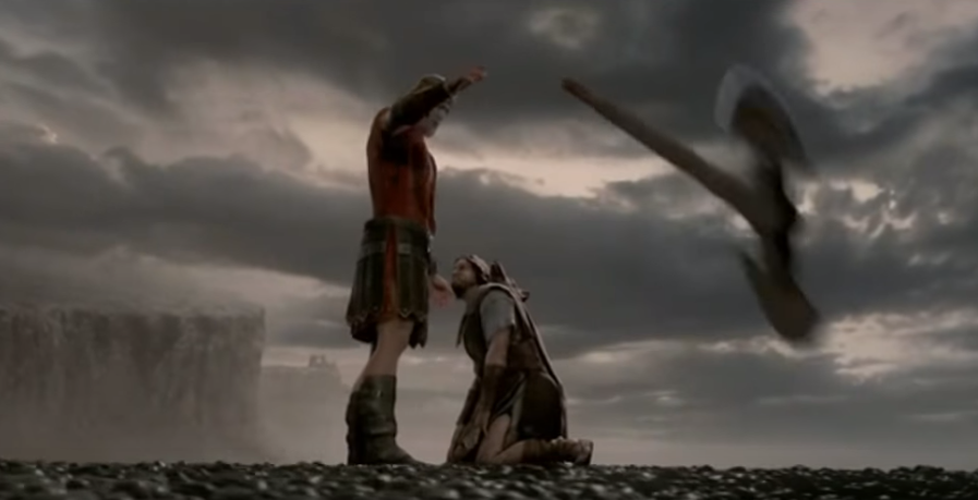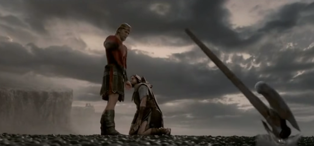 When objects or characters move, their trajectories usually follow arcs, not straight lines. Animating with arcs makes motion more realistic, reflecting real-world movements. This principle is evident throughout the Beowulf movie. For example, when a character is killed by an axe, his fall follows an arced path, making it look lifelike. Similarly, when Beowulf throws an axe, its trajectory is arced, adding to the realism.