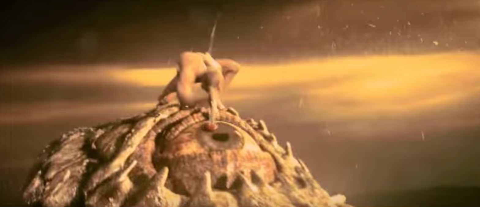 To make movements more realistic, adding frames at the beginning and end of an action can create a natural increase and decrease in speed. In the 2007 Beowulf movie, the "slow in and slow out" animation principle is used to enhance realism. For example, when Grendel's mother entices the new king, her head movement slows at the start and end. The same technique is applied when she picks up Grendel's severed head and circles Beowulf. This principle is used throughout the movie to make actions feel more lifelike.